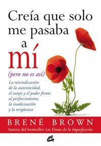 Una investigaci¢n reveladora de los dolorosos efectos de la culpa y la vergenza femeninas, con innovadoras y potentes estrategias paraliberar nuestra capacidad de amar, criar, trabajar y vivir enlibertad.«Bren‚ Brown nos ayuda a librarnos de los grilletes que nos atan a lafalsa idea de nuestra inadecuaci¢n, y nos gu¡a hacia el reconocimiento y la aceptaci¢n de nuestro aut‚ntico ser.»Claudia Black, autora de Eso nunca me suceder a m¡«Cre¡a que solo me pasaba a m¡ puede llegar a convertirse en la puerta a la libertad y la autoestima para muchas, muchas mujeres.»Martha Beck, columnista de O, The Oprah Magazine«Si queremos cambiar nuestra vida, nuestras relaciones e incluso elmundo, debemos empezar por comprender y superar la vergenza que nosmantiene en silencio. La capacidad que demuestra Bren‚ Brown a la hora de explorar la vergenza y la resiliencia con humor, vulnerabilidad y sinceridad resulta estimulante y liberadora a partes iguales.»Profesora Jody Williams, premio Nobel de la Paz 1997«Fruto de una erudici¢n excepcional y repleto de testimoniosinspiradores, este es uno de esos raros libros que pueden cambiarnosla vida.»Harriet Lerner, autora de La danza de la rabia