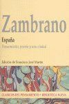 La presente edici¢n restituye el original espa¤ol atendiendo a lafilolog¡ade la forma interna y sit£a la obra en el contexto de las relacionesintelectuales-sobre todo italianas- que sostuvieron a Mar¡a Zambrano durantelos a¤os de su exilio en la «ciudad eterna». Espa¤a, en efecto,permite desvelarun eslab¢n imprescindible de su pensamiento: su reflexi¢n sobre el