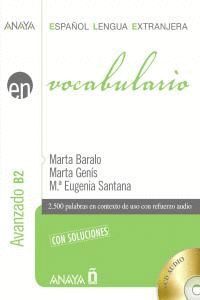 Vocabulario Avanzado B2ANAYA ELE EN es una colecci¢n tem tica dise¤ada para aunar teor¡a ypr ctica en distintos mbitos de la ense¤anza de ELE. Pone al alcancedel estudiante de espa¤ol como lengua extranjera un material detrabajo que le sirve de complemento a cualquier m‚todo. Este Vocabulario se inicia con la representaci¢n gr fica de un tema ycontin£a con una serie de ejercicios variados. Se presta especialatenci¢n a la comprensi¢n auditiva del l‚xico a trav‚s de grabacionesorales de los textos y actividades espec¡ficas. Todo ello con unl‚xico contextualizado EN usoESTRUCTURA de la UNIDADCada Unidad consta de:& #10148; FIJESE! Vi¤eta que ilustra una selecci¢n de palabrasdel tema que se estudia.& #10148; PALABRAS EN CONTEXTO Actividades que trabajan, a partirde un texto, palabras del campo sem ntico de la unidad.& #10148; EJERCICIOS Serie de actividades variadas con refuerzoaudio.OTRAS PARTES DEL LIBRO- Contiene 2 CD audio- Test de Autoevaluaci¢n- Soluciones- Glosario alfab‚tico. Listado de los t‚rminos estudiados, seguidos de l¡neas de puntos, con el fin de que el alumno lo traduzca a suidioma.- Glosario tem tico. Siguiendo la estructura del Plan Curricular delInstituto Cervantes, se ofrece un ¡ndice de materias que recoge lost‚rminos clasificados por temas, indicando, adem s, la unidad donde se trabajan.