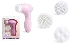 Cepillo facial eléctrico con dos velocidades y tres cabezales intercambiables. Extra suave y respetuoso con la piel. Proporciona una limpieza profunda, diez veces más eficaz que la limpieza manual. También mejora la absorción y el efecto de los tratamientos cosméticos. Incluye tres cabezales: cepillo, silicona y masaje. _x000D_ Funciona con 2 pilas tipo AAA (no incluidas)_x000D_