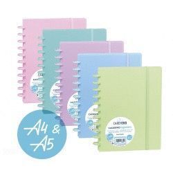 SISTEMA DE ENCUADERNACION CON DISCOS Y HOJAS EXTRAIBLES. PORTADA DE POLIPROPILENO SEMI RIGIDO, CIERRE CON GOMA ELASTICA Y 8 DISCOS PLASTICOS CON 30MM. 100 HOJAS EXTRAIBLES DE 100GR. CUADRICULA 5X5. TAMAÑO A5