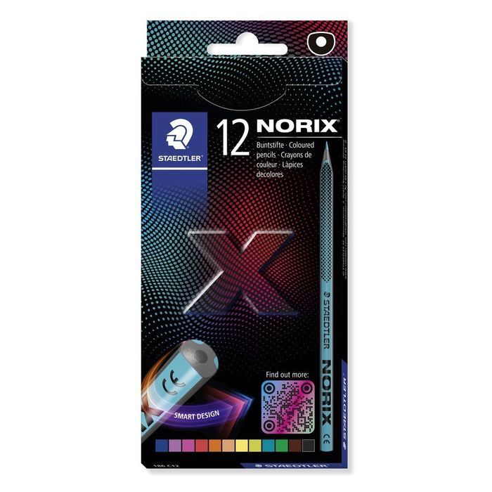 Los lápices de colores Staedtler Noris con forma inteligente ofrecen una experiencia de coloreado cómoda y precisa gracias a su diseño ergonómico y materiales de alta calidad. Este estuche contiene 12 lápices de colores surtidos, ideales para dibujo y escritura relajada, con colores extra intensos y una fabricación responsable y segura.