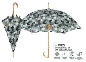 Paraguas mujer 61/8 automático, estampado tulipanes. Tejido reciclado, estructura de fibra de vidrio, antiviento y puño de madera natural. Perletti Green