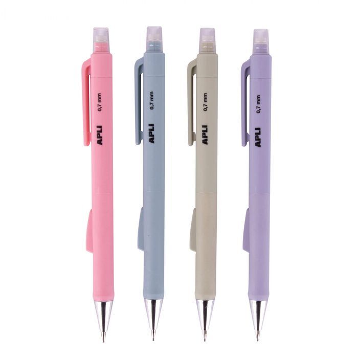 Portaminas para minas de 0,7 mm en colores surtidos: rosa pastel, azul pastel, beige y lila pastel. El portaminas cuenta con un nuevo mecanismo retráctil que permite extender o retraer la mina con mayor facilidad, evitando la necesidad de afilar constantemente el lápiz y reduciendo el desperdicio de grafito. íPara una escritura precisa y nítida en cada trazo!