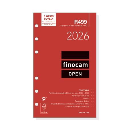 Duración agenda/calendario: 12 meses semana a la vista (enero-diciembre) + 6 meses resumidos quincena a la vista (tres meses QV antes del inicio de la anualidad y tres meses QV al finalizar la anualidad).
